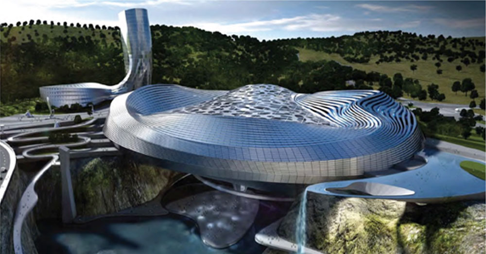 However what is more impressive than the centre’s size, is that it is being built in a massive suspended building constructed within a huge underground pit, that was created by decades of mining. The pit is reported to be over 300 metres long, 200 metres wide and 100 metres deep.