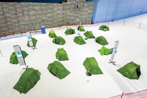 Many indoor snow centres have given people the chance to camp out overnight on their snow slopes. Various reasons have been given including a novelty romantic night in The Netherlands or training for Arctic Adventures in the UK.