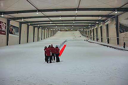 At 100m wide at its widest point the indoor slope which opened in 2006 is believed to be the widest in the world. The slope length is 300m, gradients range vary between 9 and 20 degrees, and are served by a Doppelmayr six-seat chairlift with a capacity of 3000 skiers per hour.