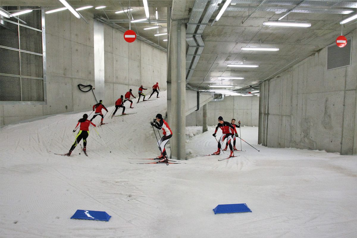 Germany joined Finland and Sweden in offering year-round indoor cross-country skiing and biathlon in 2009. The 1.23km long tunnel provides for an exciting and varied 2 km long trail invites professionals and enthusiasts alike to test their skills with gradients and slopes of up to 12% and a constant temperature of -4 °C.