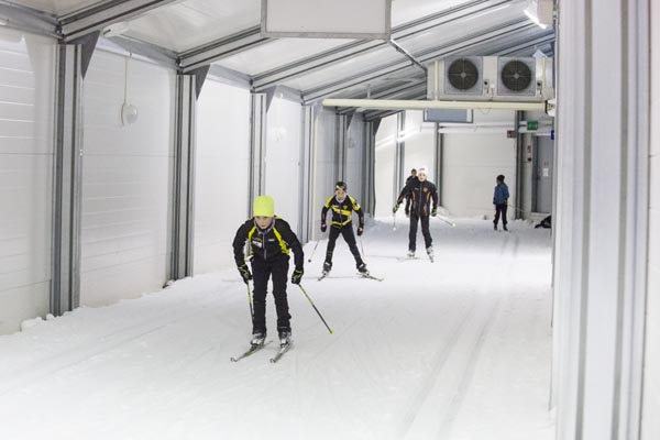 Part of a multi-sports facility that features seven floors of multi-sport activities, including a 1.2km long year-round snow track for cross country skiing and two more separate tracks for skating style skiing. The indoor temperature is a constant minus 2-4 degrees Celsius.