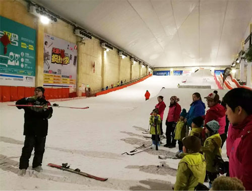 Wencheng Swan Ski Resort, the largest indoor ski resort in East China, opened in 2015 with a 180 metre slope. The facility uses artificial refrigeration and snowmaking technology imported from Australia, the indoor temperature here always remains between -2 and -5C