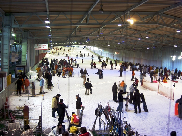 One of the three claimants (With Australia’s Mt TheBarton and Belgium’s Casaablanca, to the title of “first refrigerated major indoor ‘real snow’ ski slope”, and described as “surprisingly attractive” by visitors by the standards of both typical snowdome and typical Japanese suburban industrial architecture at the time. It had a 120 x 30 metre slope and is believed to have actua\lly been the second in the world and first in asia.