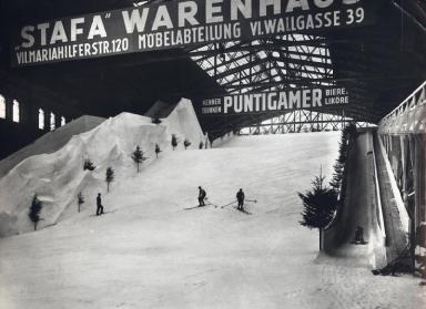 What is believed to have been the world’s first attempt at a permanent ‘indoor snow centre’ opened in Vienna in November 1927. In fact this was not an indoor snow centre in the modern sense of the word, in that real snow was not used, but a ‘snow-like’ mix of material was used and it was indoors. However it was not popular enough and closed after six months. A similar facility operated in Germany for 10 weeks from Easter to June 1928 but was intended as a temporary attraction.
