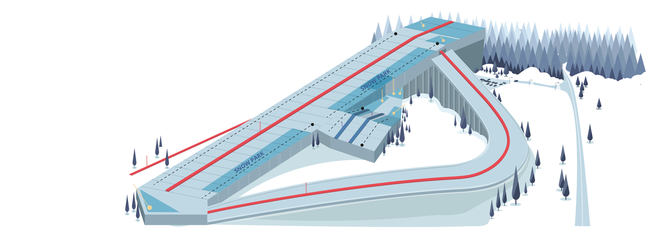 A standard SNOVA 65m long terrain park targetting the snowboarding market.